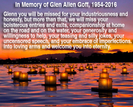 Glen Allen Goff came to Galveston, Texas for a carpentry repair job on Payco Marine after Hurricane Alicia. He was semi-adopted by the owner, Herschel Payne, and Glen stayed on to learn the marina and bait business. He eventually bought Galveston Bait and Tackle, which he rebuilt three times in the wake of storms. Glen always said fishermen and fisherwomen were the most interesting collection of people inthe world, and among the best people, he’d ever known. Glen never met a stranger, no matter their gender, their ethnicity, their age, their ability, their status before the law, or their station in life. If he is to be remembered for any one thing, it will be his gift of promiscuous friendship.